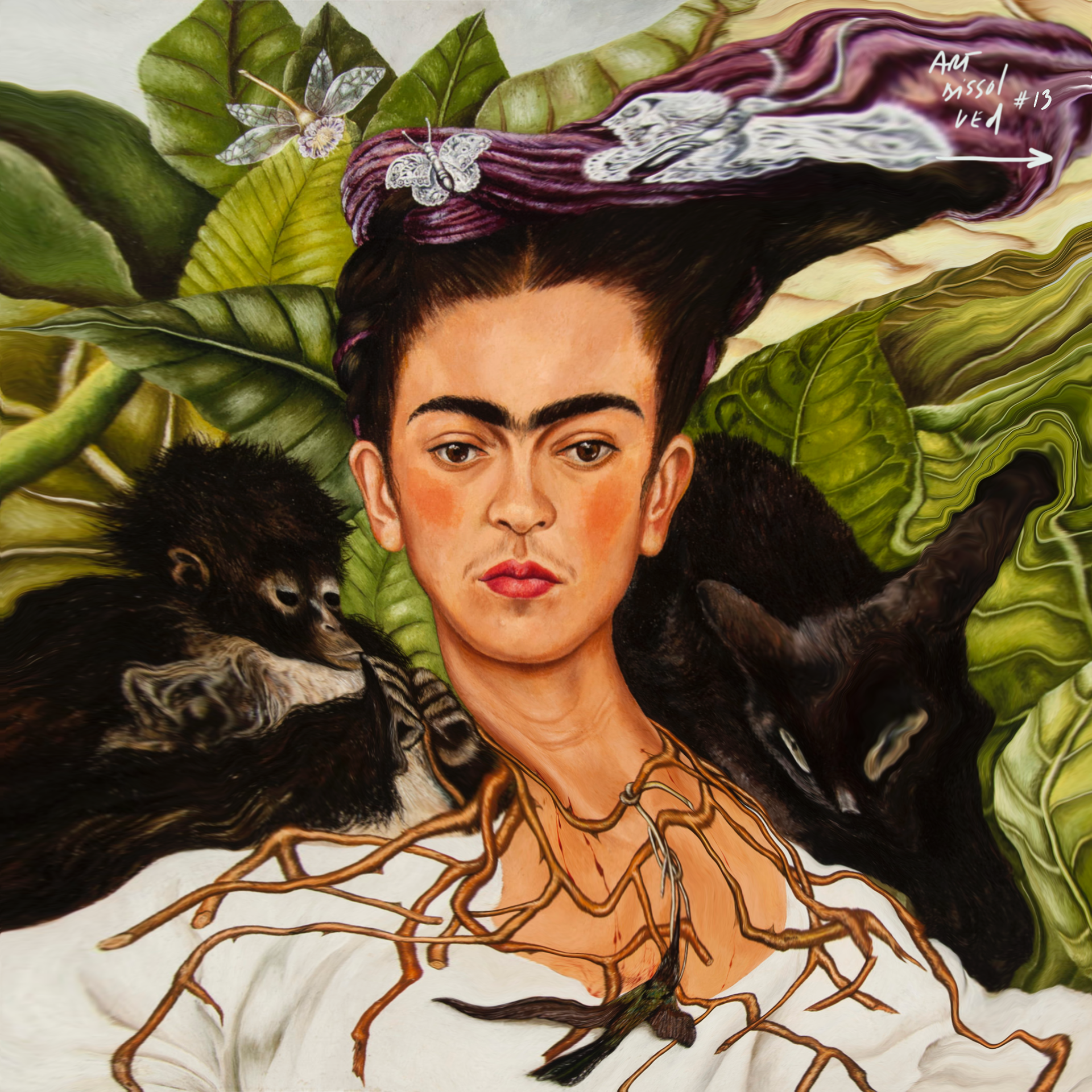 Self-Portrait with Thorn Necklace & Hummingbird